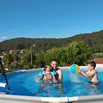 Η Casa Santamaria A 5Min De Noia Cerca De La Playa Βίλα Lousame διαθέτει βεράντα με θέα στο βουνό, καθώς και έχει πισίνα.